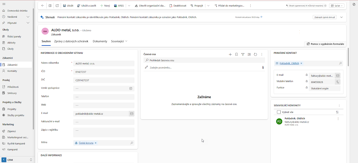 Microsoft Dynamics 365 Sales / Power Apps zajišťuje podporu v oblasti evidence a komunkace s klienty, evidence příležitostí, ale také evidenci projektů a služeb, které si klient u vás objednal.