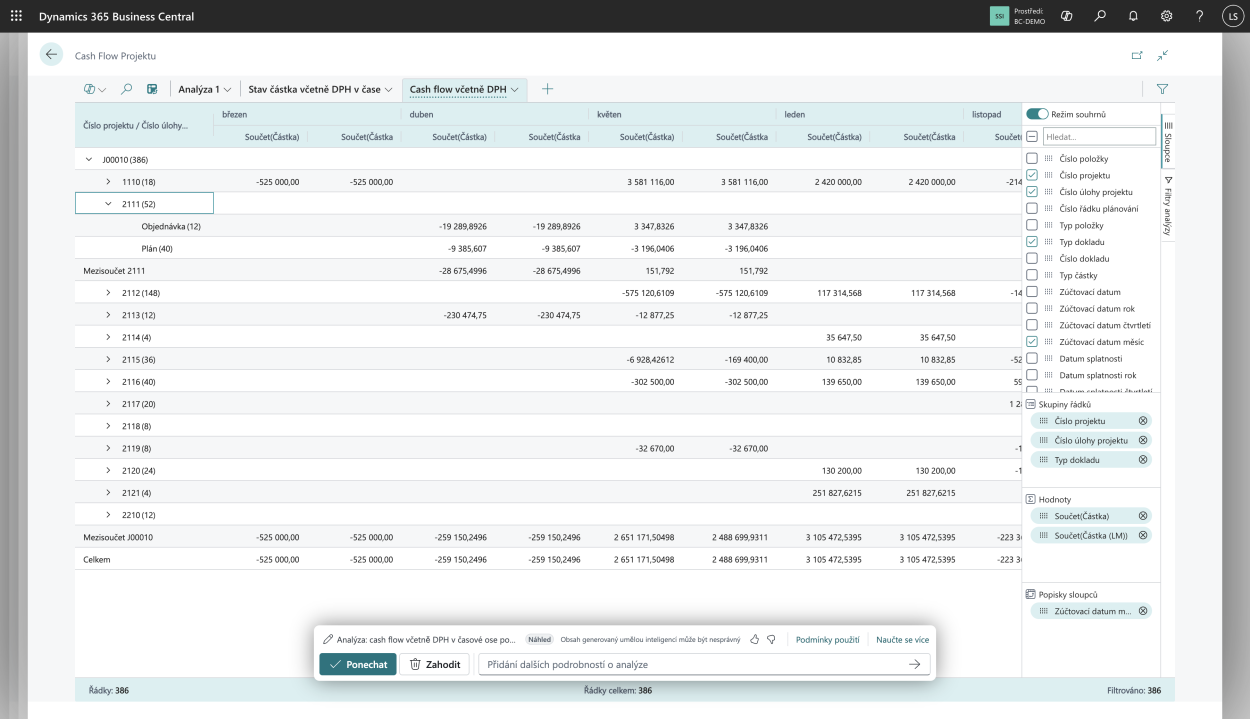 Analýza: cash flow včetně DPH v časové ose